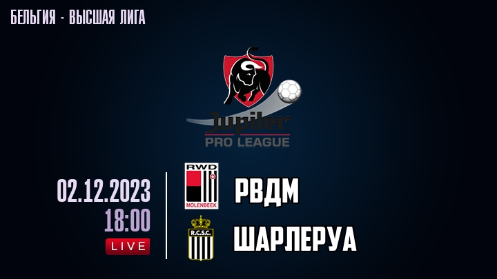 2 декабря 2023 года, состоялась онлайн трансляция футбольного матча между футбольным клубом РВДМ и футбольным клубом Шарлеруа, проходящего в рамках Высшей лиги Бельгии.