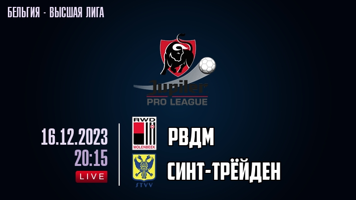 Бельгия - Высшая лига Прямая трансляция: РВДМ — Синт-Трёйден 16 декабря 2023