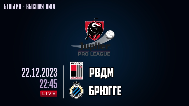 22 декабря 2023 года, мы предлагаем посмотреть онлайн трансляцию футбольного матча между футбольным клубом РВДМ и футбольным клубом Брюгге, проходящего в рамках Высшей лиги Бельгии.