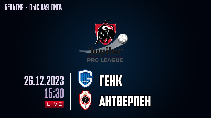 26 декабря 2023 года, состоялась онлайн трансляция футбольного матча между футбольным клубом Генк и футбольным клубом Антверпен, проходящего в рамках Высшей лиги Бельгии.