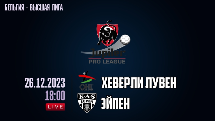 26 декабря 2023 года, состоялась онлайн трансляция футбольного матча между футбольным клубом Хеверли Лувен и футбольным клубом Эйпен, проходящего в рамках Высшей лиги Бельгии.