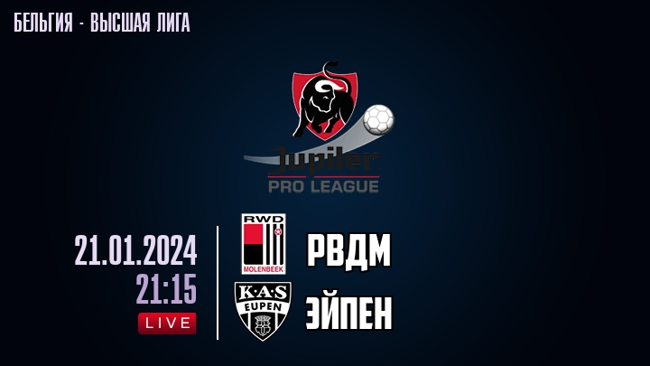 21 января 2024 года, состоялась онлайн трансляция футбольного матча между футбольным клубом РВДМ и футбольным клубом Эйпен, проходящего в рамках Высшей лиги Бельгии.