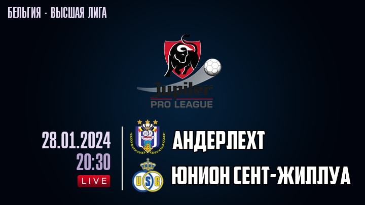28 января 2024 года, состоялась онлайн трансляция футбольного матча между футбольным клубом Андерлехт и футбольным клубом Юнион Сент-Жиллуа, проходящего в рамках Высшей лиги Бельгии.