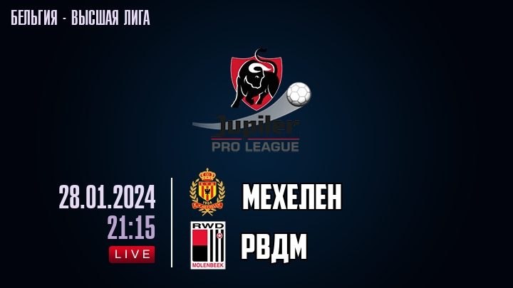 28 января 2024 года, состоялась онлайн трансляция футбольного матча между футбольным клубом Мехелен и футбольным клубом РВДМ, проходящего в рамках Высшей лиги Бельгии.