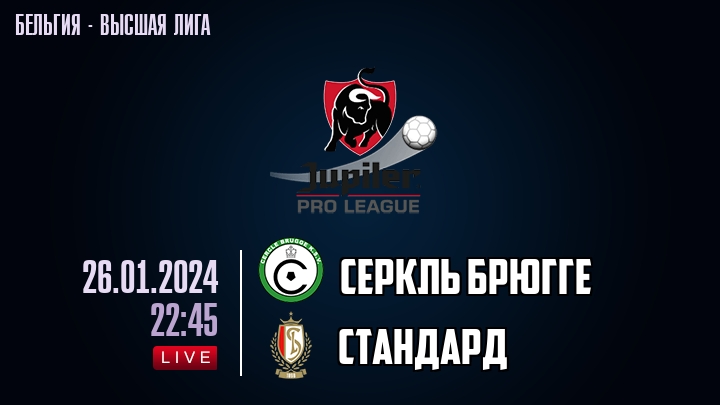 26 января 2024 года, состоялась онлайн трансляция футбольного матча между футбольным клубом Серкль Брюгге и футбольным клубом Стандард, проходящего в рамках Высшей лиги Бельгии.