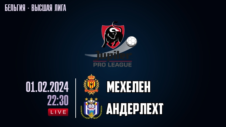 1 февраля 2024 года, состоялась онлайн трансляция футбольного матча между футбольным клубом Мехелен и футбольным клубом Андерлехт, проходящего в рамках Высшей лиги Бельгии.