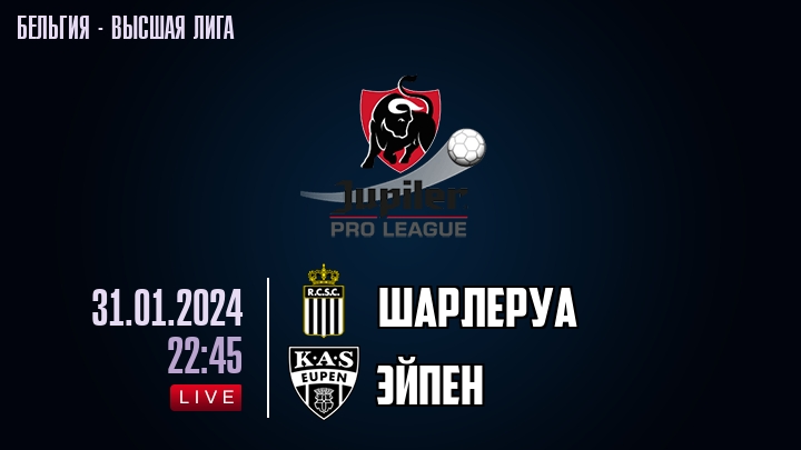 31 января 2024 года, состоялась онлайн трансляция футбольного матча между футбольным клубом Шарлеруа и футбольным клубом Эйпен, проходящего в рамках Высшей лиги Бельгии.