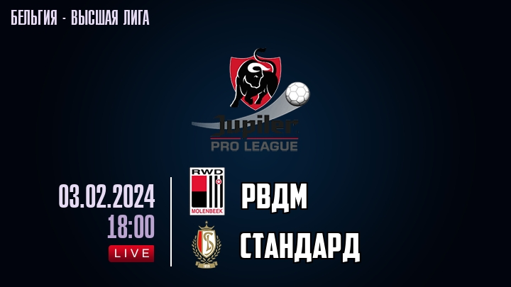 3 февраля 2024 года, состоялась онлайн трансляция футбольного матча между футбольным клубом РВДМ и футбольным клубом Стандард, проходящего в рамках Высшей лиги Бельгии.