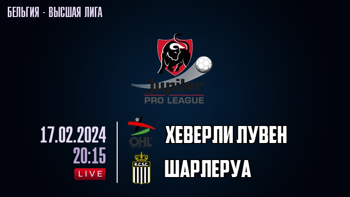17 февраля 2024 года, состоялась онлайн трансляция футбольного матча между футбольным клубом Хеверли Лувен и футбольным клубом Шарлеруа, проходящего в рамках Высшей лиги Бельгии.