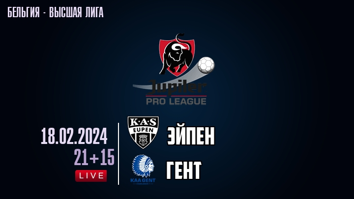 18 февраля 2024 года, состоялась онлайн трансляция футбольного матча между футбольным клубом Эйпен и футбольным клубом Гент, проходящего в рамках Высшей лиги Бельгии.
