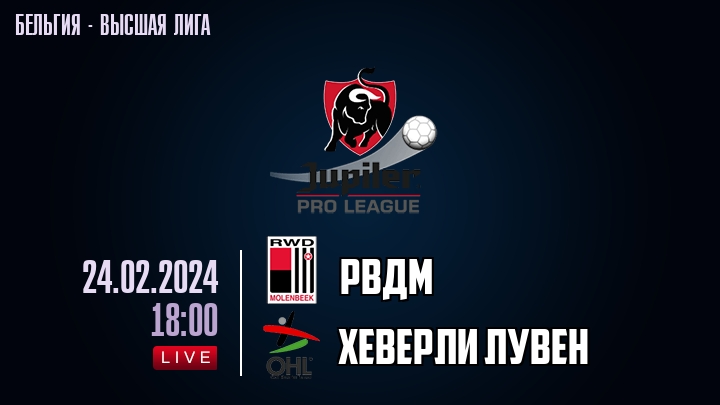24 февраля 2024 года, состоялась онлайн трансляция футбольного матча между футбольным клубом РВДМ и футбольным клубом Хеверли Лувен, проходящего в рамках Высшей лиги Бельгии.