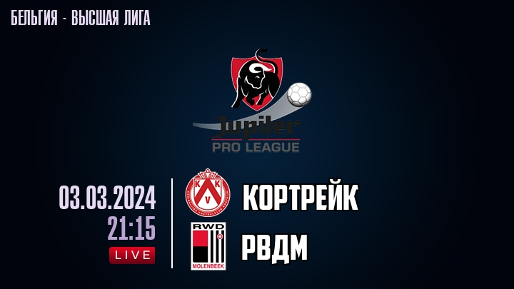 3 марта 2024 года, состоялась онлайн трансляция футбольного матча между футбольным клубом Кортрейк и футбольным клубом РВДМ, проходящего в рамках Высшей лиги Бельгии.
