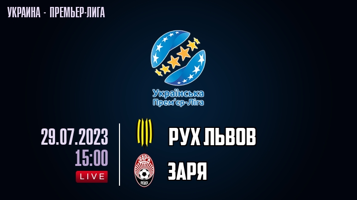 29 июля 2023 года, состоялась онлайн трансляция футбольного матча между футбольным клубом Рух Львов и футбольным клубом Заря, проходящего в рамках Премьер лиги Украины.