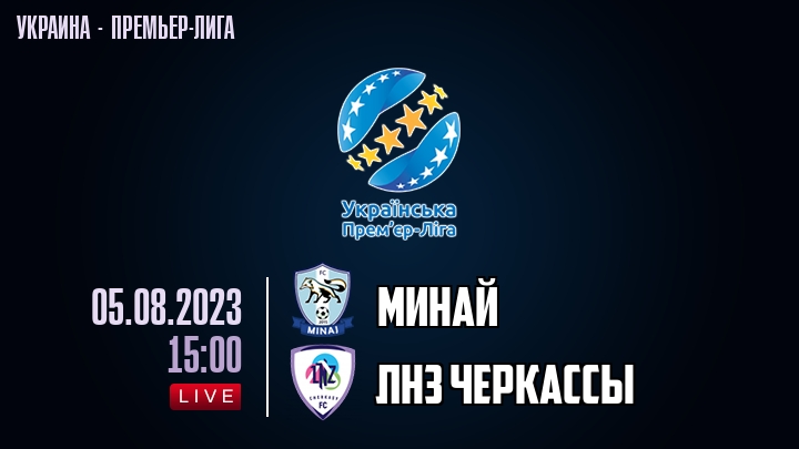 5 августа 2023 года, состоялась онлайн трансляция футбольного матча между футбольным клубом Минай и футбольным клубом ЛНЗ Черкасы, проходящего в рамках Премьер лиги Украины.