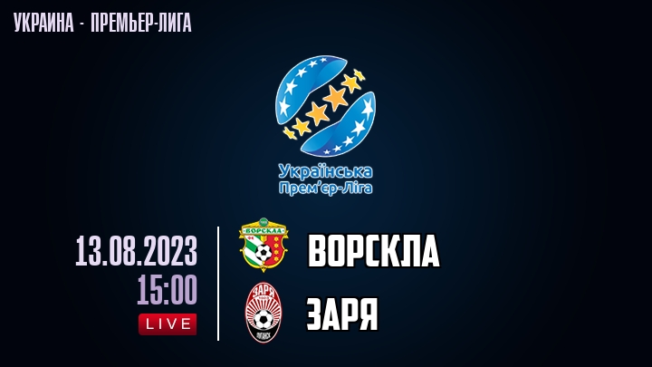 13 августа 2023 года, состоялась онлайн трансляция футбольного матча между футбольным клубом Ворскла и футбольным клубом Заря, проходящего в рамках Премьер лиги Украины.