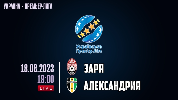 18 августа 2023 года, состоялась онлайн трансляция футбольного матча между футбольным клубом Заря и футбольным клубом Александрия, проходящего в рамках Премьер лиги Украины.