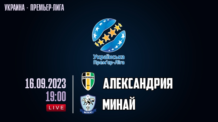 16 сентября 2023 года, состоялась онлайн трансляция футбольного матча между футбольным клубом Александрия и футбольным клубом Минай, проходящего в рамках Премьер лиги Украины.