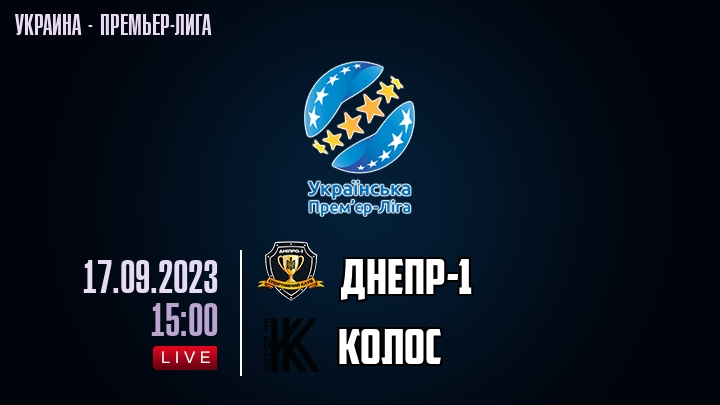 17 сентября 2023 года, состоялась онлайн трансляция футбольного матча между футбольным клубом Днепр- и футбольным клубом Колос, проходящего в рамках Премьер лиги Украины.
