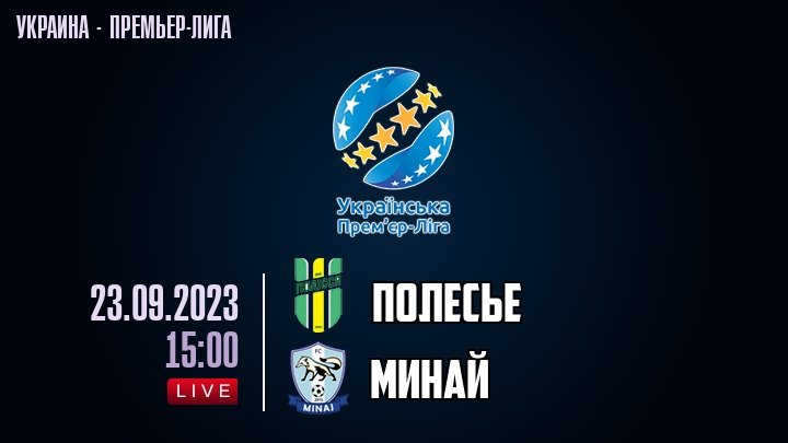 23 сентября 2023 года, состоялась онлайн трансляция футбольного матча между футбольным клубом Полесье и футбольным клубом Минай, проходящего в рамках Премьер лиги Украины.