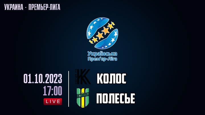1 октября 2023 года, состоялась онлайн трансляция футбольного матча между футбольным клубом Колос и футбольным клубом Полесье, проходящего в рамках Премьер лиги Украины.