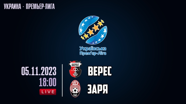 5 ноября 2023 года, состоялась онлайн трансляция футбольного матча между футбольным клубом Верес и футбольным клубом Заря, проходящего в рамках Премьер лиги Украины.