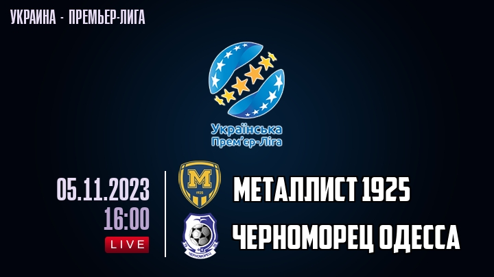 5 ноября 2023 года, состоялась онлайн трансляция футбольного матча между футбольным клубом Металлист и футбольным клубом Черноморец Одесса, проходящего в рамках Премьер лиги Украины.