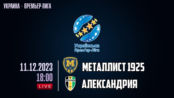 11 декабря 2023 года, состоялась онлайн трансляция футбольного матча между футбольным клубом Металлист и футбольным клубом Александрия, проходящего в рамках Премьер лиги Украины.