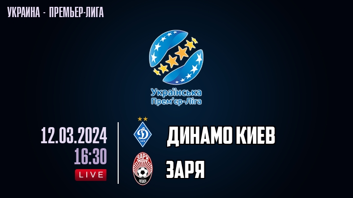 12 марта 2024 года, состоялась онлайн трансляция футбольного матча между футбольным клубом Динамо Киев и футбольным клубом Заря, проходящего в рамках Премьер лиги Украины.