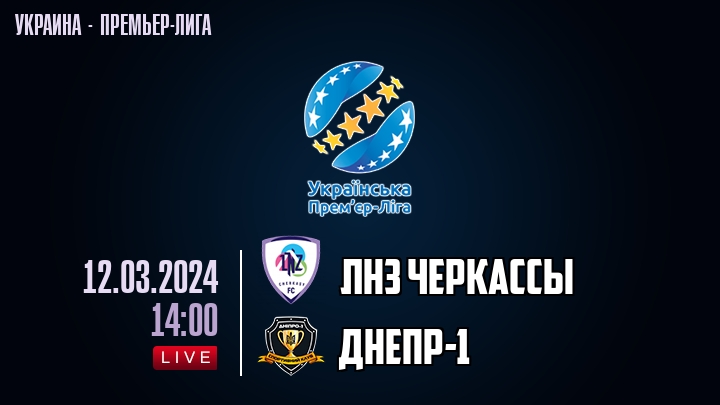 12 марта 2024 года, состоялась онлайн трансляция футбольного матча между футбольным клубом ЛНЗ Черкасы и футбольным клубом Днепр-, проходящего в рамках Премьер лиги Украины.