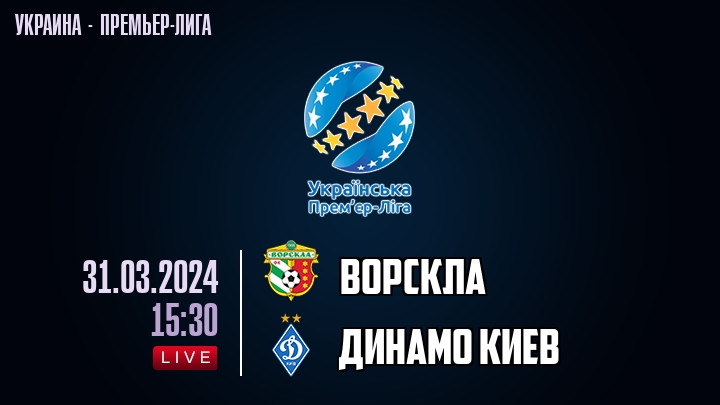 31 марта 2024 года, состоялась онлайн трансляция футбольного матча между футбольным клубом Ворскла и футбольным клубом Динамо Киев, проходящего в рамках Премьер лиги Украины.