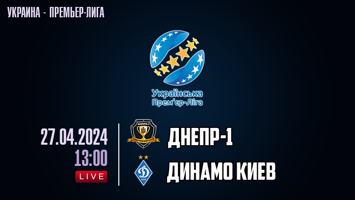 27 апреля 2024 года, состоялась онлайн трансляция футбольного матча между футбольным клубом Днепр- и футбольным клубом Динамо Киев, проходящего в рамках Премьер лиги Украины.