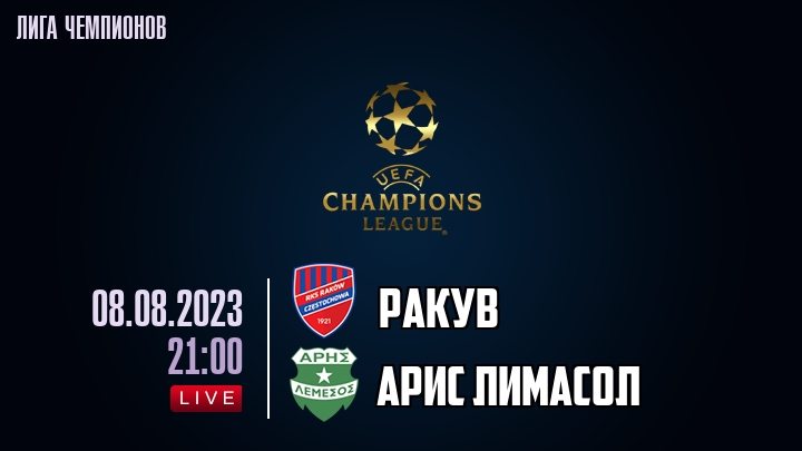 8 августа 2023 года, состоялась онлайн трансляция футбольного матча между футбольным клубом Ракув и футбольным клубом Арис Лимасол, проходящего в рамках Лиги Чемпионов.