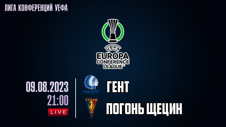 9 августа 2023 года, состоялась онлайн трансляция футбольного матча между футбольным клубом Гент и футбольным клубом Погонь Щецин, проходящего в рамках Лиги конференций УЕФА.