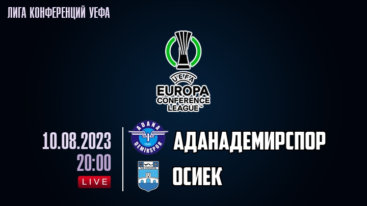 10 августа 2023 года, состоялась онлайн трансляция футбольного матча между футбольным клубом Аданадемирспор и футбольным клубом Осиек, проходящего в рамках Лиги конференций УЕФА.