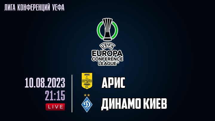 10 августа 2023 года, состоялась онлайн трансляция футбольного матча между футбольным клубом Арис и футбольным клубом Динамо Киев, проходящего в рамках Лиги конференций УЕФА.