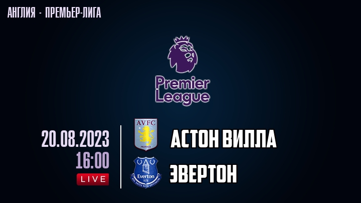 20 августа 2023 года, состоялась онлайн трансляция футбольного матча между футбольным клубом Астон Вилла и футбольным клубом Эвертон, проходящего в рамках Премьер лиги Англии.