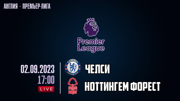 2 сентября 2023 года, состоялась онлайн трансляция футбольного матча между футбольным клубом Челси и футбольным клубом Ноттингем Форест, проходящего в рамках Премьер лиги Англии.