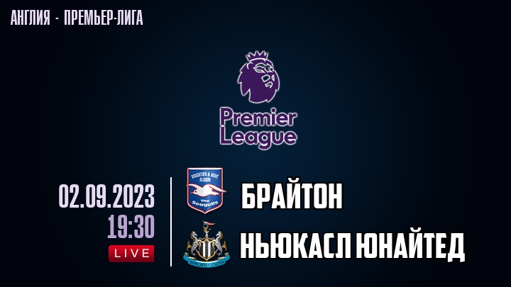 2 сентября 2023 года, состоялась онлайн трансляция футбольного матча между футбольным клубом Брайтон и футбольным клубом Ньюкасл Юнайтед, проходящего в рамках Премьер лиги Англии.