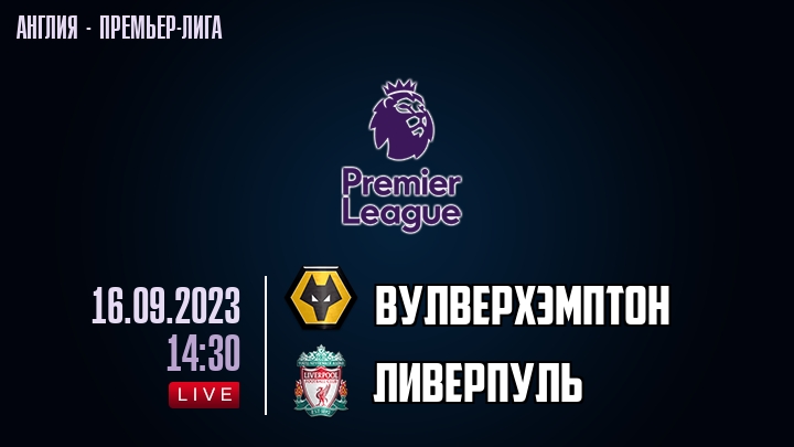 16 сентября 2023 года, состоялась онлайн трансляция футбольного матча между футбольным клубом Вулверхэмптон и футбольным клубом Ливерпуль, проходящего в рамках Премьер лиги Англии.