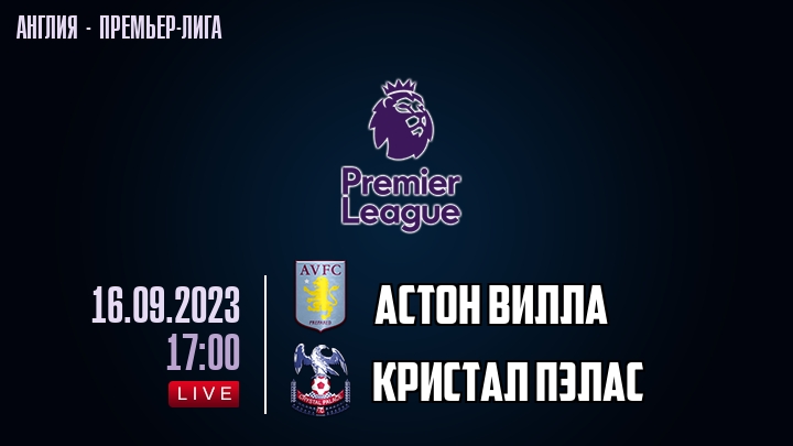 16 сентября 2023 года, состоялась онлайн трансляция футбольного матча между футбольным клубом Астон Вилла и футбольным клубом Кристал Пэлас, проходящего в рамках Премьер лиги Англии.