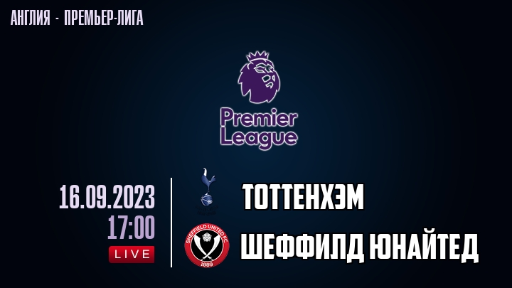 16 сентября 2023 года, состоялась онлайн трансляция футбольного матча между футбольным клубом Тоттенхэм и футбольным клубом Шеффилд Юнайтед, проходящего в рамках Премьер лиги Англии.