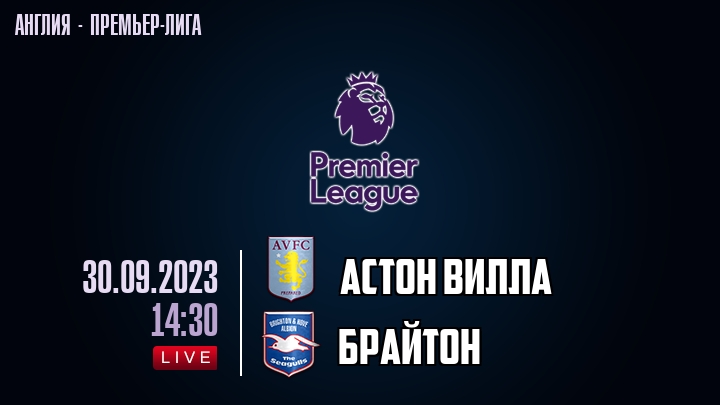 30 сентября 2023 года, состоялась онлайн трансляция футбольного матча между футбольным клубом Астон Вилла и футбольным клубом Брайтон, проходящего в рамках Премьер лиги Англии.