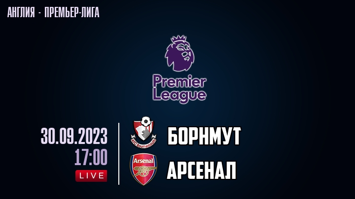 30 сентября 2023 года, состоялась онлайн трансляция футбольного матча между футбольным клубом Борнмут и футбольным клубом Арсенал, проходящего в рамках Премьер лиги Англии.