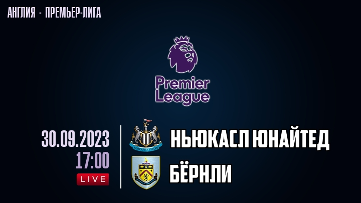 30 сентября 2023 года, состоялась онлайн трансляция футбольного матча между футбольным клубом Ньюкасл Юнайтед и футбольным клубом Брнли, проходящего в рамках Премьер лиги Англии.