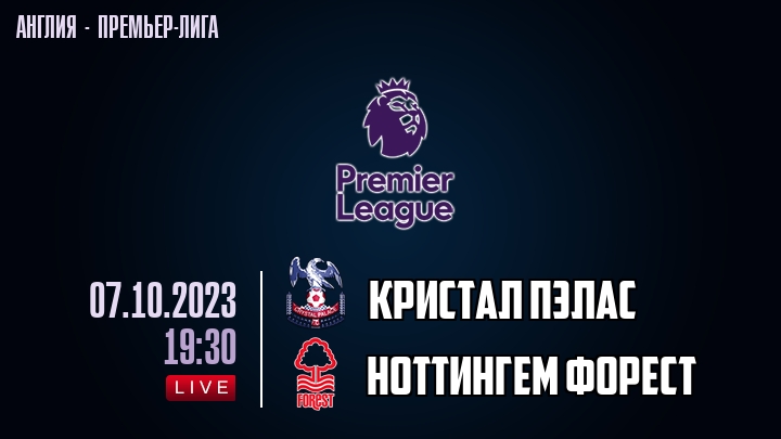 7 октября 2023 года, состоялась онлайн трансляция футбольного матча между футбольным клубом Кристал Пэлас и футбольным клубом Ноттингем Форест, проходящего в рамках Премьер лиги Англии.