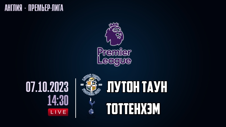 7 октября 2023 года, состоялась онлайн трансляция футбольного матча между футбольным клубом Лутон Таун и футбольным клубом Тоттенхэм, проходящего в рамках Премьер лиги Англии.