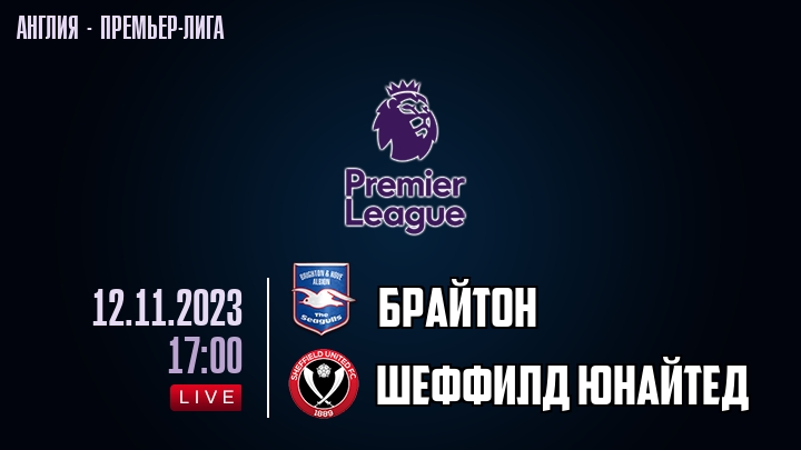 12 ноября 2023 года, состоялась онлайн трансляция футбольного матча между футбольным клубом Брайтон и футбольным клубом Шеффилд Юнайтед, проходящего в рамках Премьер лиги Англии.