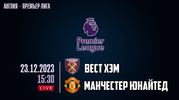 23 декабря 2023 года, состоялась онлайн трансляция футбольного матча между футбольным клубом Вест Хэм и футбольным клубом Манчестер Юнайтед, проходящего в рамках Премьер лиги Англии.