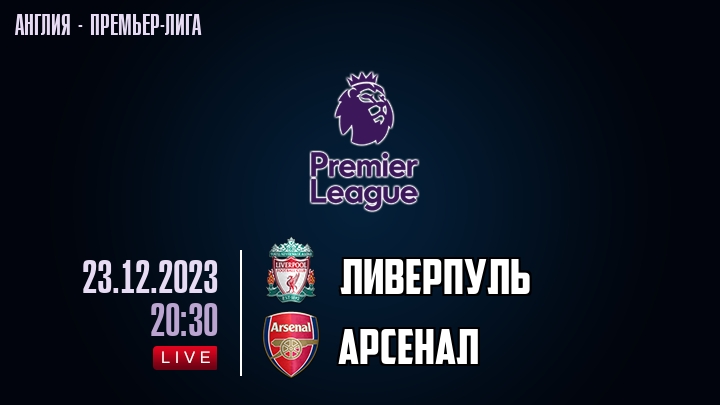 23 декабря 2023 года, состоялась онлайн трансляция футбольного матча между футбольным клубом Ливерпуль и футбольным клубом Арсенал, проходящего в рамках Премьер лиги Англии.