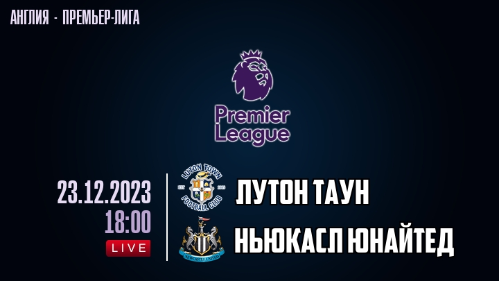 23 декабря 2023 года, состоялась онлайн трансляция футбольного матча между футбольным клубом Лутон Таун и футбольным клубом Ньюкасл Юнайтед, проходящего в рамках Премьер лиги Англии.